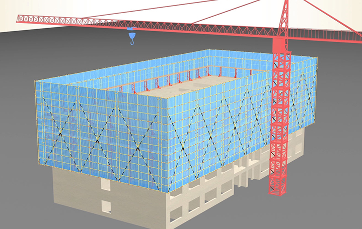 构架一次搭设成型,采用塔吊提升,无需空中拆卸直接调运至地面拆除,安全性能优异。标准化、定型化、工具化的产品结构优化后架体强度高、刚度好,承载能力大幅增强。适应性强,脚手板步距可调整。能轻松面对各类办公、写字楼,住宅建筑结构。不会对预制复合外墙板混凝土成品表面造成损坏。架体外形美观,提升速度快,提升轨迹可控,到位后自动定位受力,水平高差可调节。低碳节能,节省人工,劳动量小,操作简便,经济性显著。