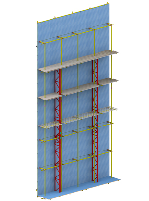 每片架体单元包括架体构造,全钢网片、花纹钢板、导轨式桁架、导向三角臂、直角连接件、斜角连接件、网片连接件、销轴等钢结构件。导轨起升式外防护架AX-Ⅱ型有架体构造系统,防护系统,导向系统,智能定位受力系统,防倾、防坠系统,水平高差调节系统。导轨起升式外防护架AX-Ⅱ型通过国家建筑工程质量监督检验中心检验,通过了住房和城乡建设部建筑节能与科技司科技计划项目验收,重庆市城乡建设委员会发布实施了地方标准《建筑施工外挂防护架安全技术规范》DBJ50/T-087-2016。