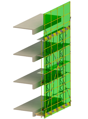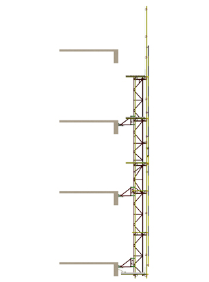 (1)安全性能优异:构架一次搭设成型,提升速度快,无需空中拆卸直接调运至地面拆除,杜绝了高空反复搭拆的风险。结构优化架体强度高、刚度好,承载能力大幅度增强,外形美观。